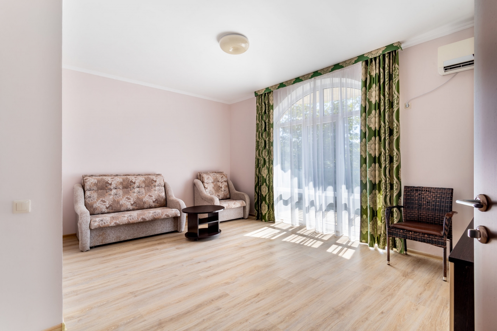 Сервис: уборка номера ежедневно, смена постельного белья 1 раз в 3 дня, смена полотенец 1 раз в 3 дня